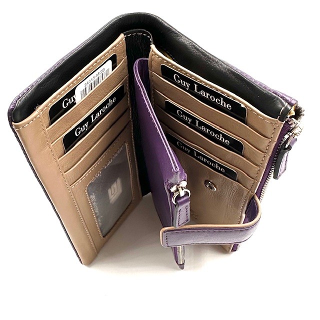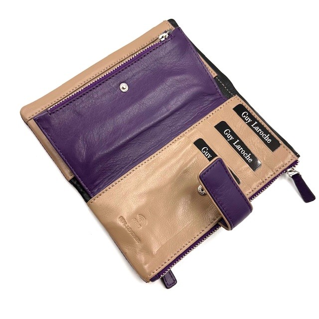 • Γυναικείο πορτοφόλι , χρώματος μωβ με μπεζ φινίρισμα , Guy Laroche