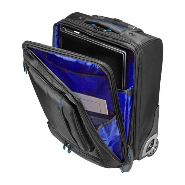 - Εξωτερικά διαθέτει τηλεσκοπικό μηχανισμό για εύκολη μεταφορά με 2 σταθερούς τροχούς κύλισης , λαβή κρατήματος στο πάνω μέρος & 3 εργονομικές θέσεις που ασφαλίζουν με φερμουάρ στο μπροστινό μέρος , 1 εκ των οποίων διαθέτει ειδική θήκη για laptop
