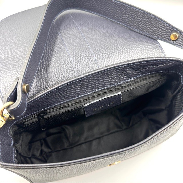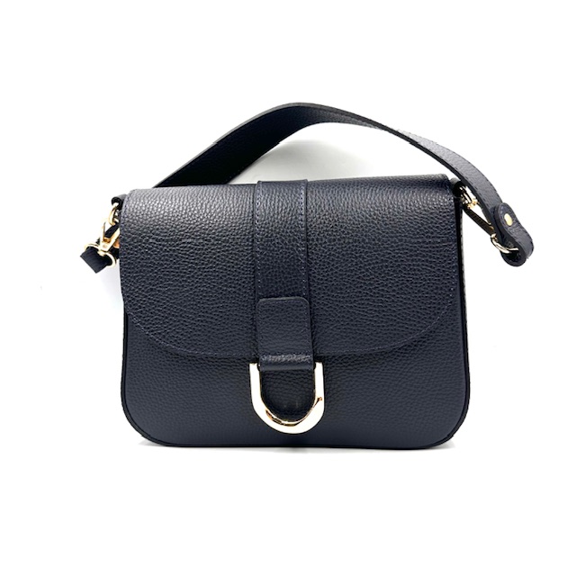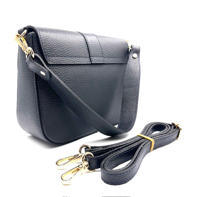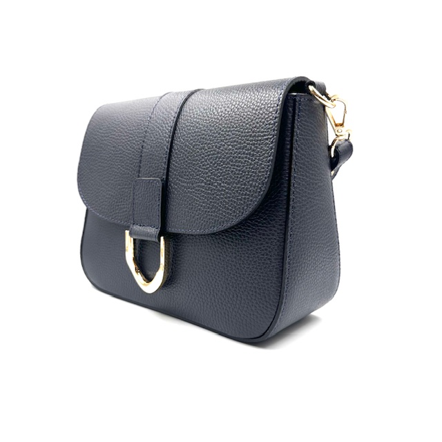 Δερμάτινη τσάντα ώμου σε χρώμα μπλε & χιαστί με έξτρα δερμάτινο λουράκι χιαστί